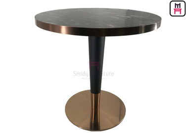میز مرمری Marmo Calacatta با پایه فولادی ضد زنگ طلایی برس خورده برای رستوران / هتل